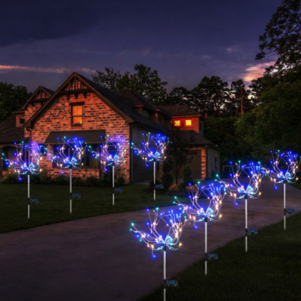 – Lampa Solara tip Artificii este decoratiunea perfecta pentru sarbatori, in gradina,pe terasa sau pentru diverse evenimente creand o atmosfera placuta si romantica.